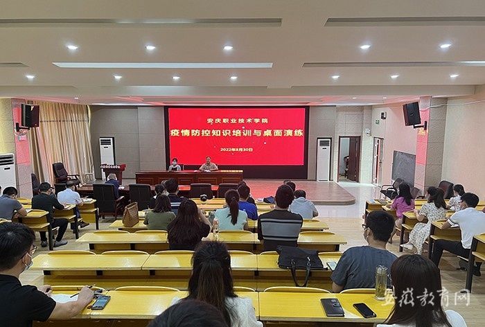 8月30日上午,安庆职业技术学院召开2022年秋季开学疫情防控知识培训与桌面演练。学院党委委员、副院长程飞主持会议,党委委员、统战部部长李五一参加会议。