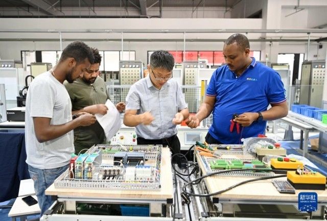 这是在天津举行的世界职业技术教育发展大会的世界职业教育产教融合博览会上拍摄的鲁班工坊建设·成果展(2022年8月19日摄)。新华社记者 李然 摄